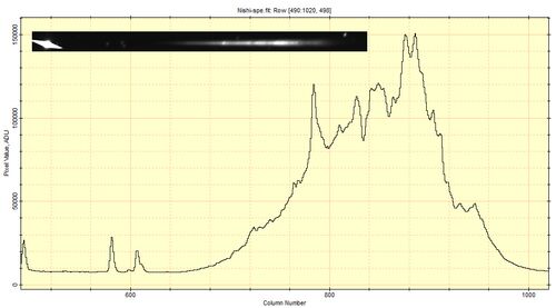 輝線がはっきり見えてきました。新星で間違いなさそうです。 横軸を波長にはしていないのでわかりにくいのですが、800より少し手前の輝線が、Hαです。 (追記) Atelにまともな分光の報告が出ました。 Straderら(ATel #11289) Aydiら(ATel #11290) CBETが発行…