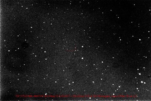 板垣さん発見の突発天体です。 撮ってみました。 Taguchiさんの指摘で、増光前の天体は青いそうですし、爆発後も青いので、わい新星でしょうか? 板垣さん、発見おめでとうございます。