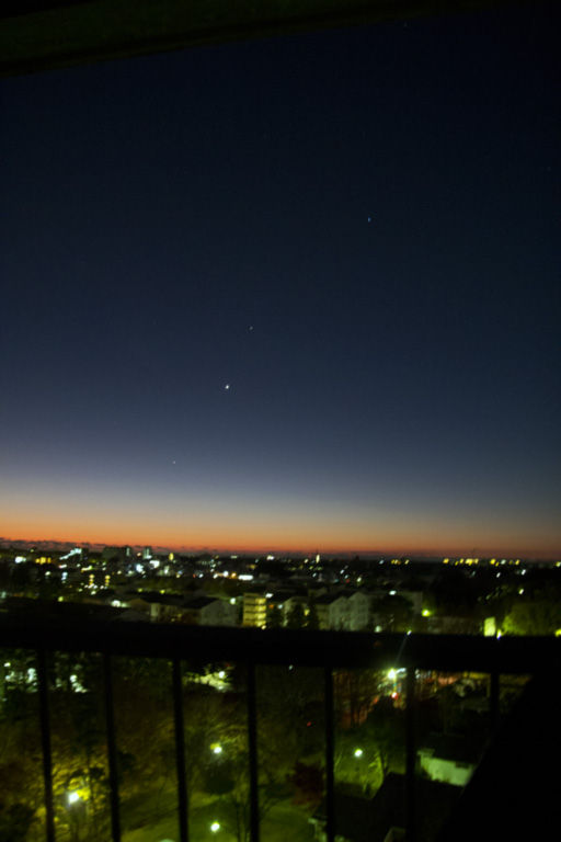 望遠鏡を片づけに、ベランダに出ると、スピカ、土星、金星、水星が並んで綺麗でした。