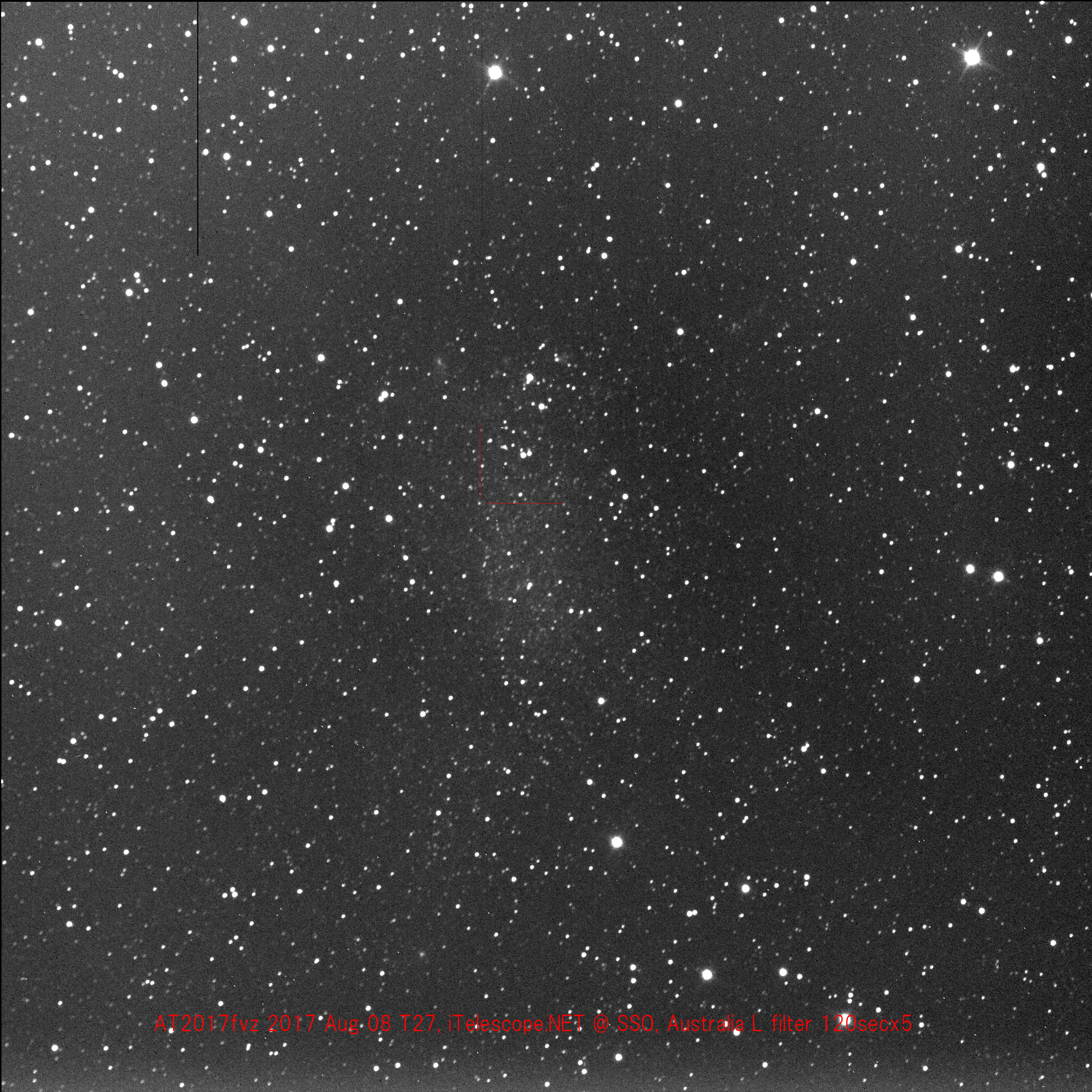 2017-08-09 AT2017fvz 天文 NGC6822の新星です。ここしばらく月が近くにあったので、月がどけるまで、撮るのが大変でした。 結構、いつまでも写っている印象です。ゆっくりした新星でしょうか。 NGC6822の新星というと、直近は2014年のTCP J19445890-1451183あたりでしょうか?時々見つかります。